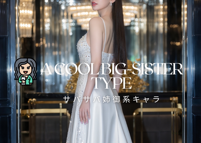 「サバサバ姉御キャラ系」の女性は、感情的になることがなく、竹を割ったような気持ちの良い性格で、お客さんと男女の垣根を超えた対等な会話を楽しめるのが強みです。お客さんのプライベートを詮索せず、依存も期待させない、あっさりとした接客が特徴的といえます。